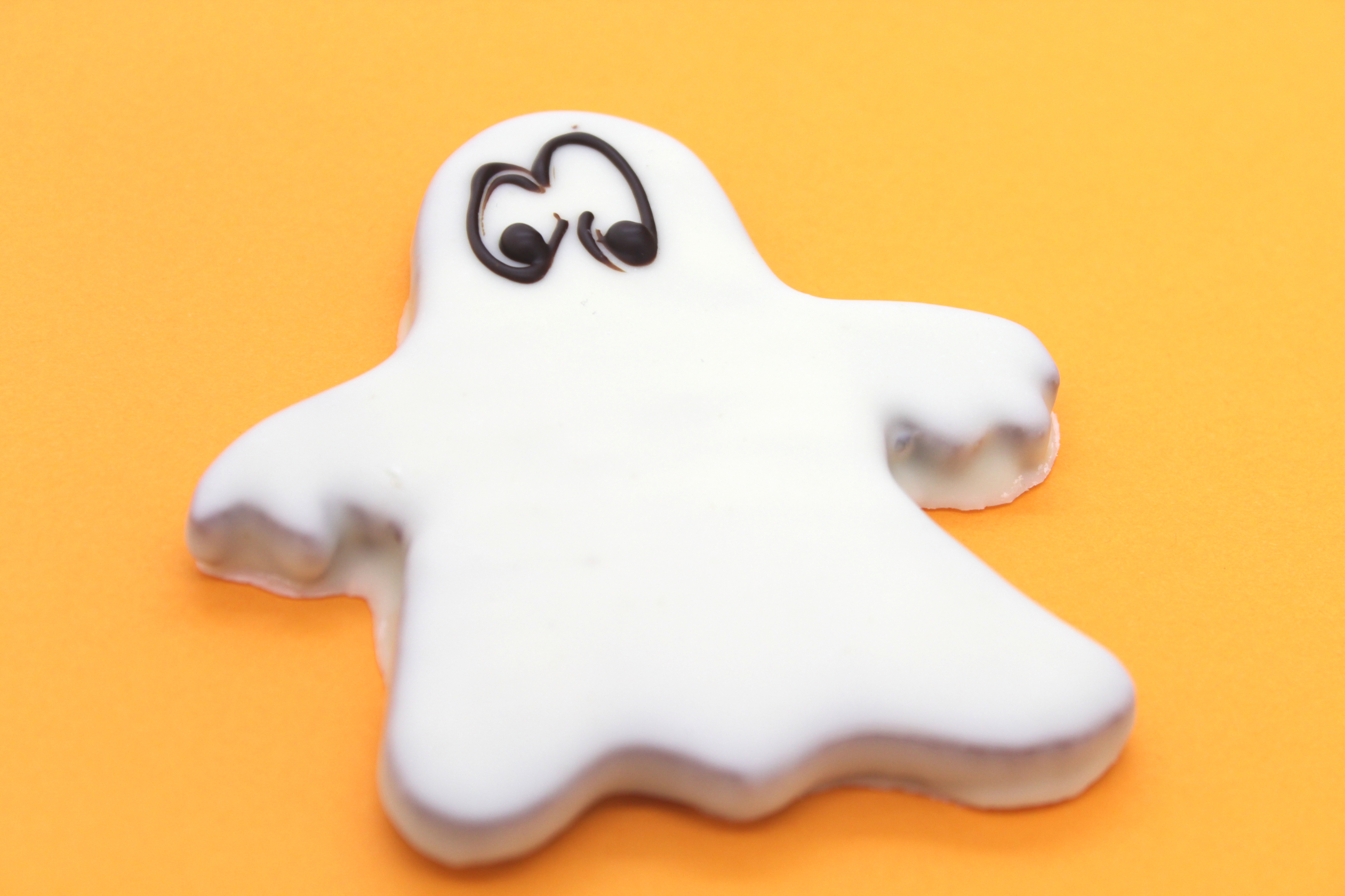 Découvrez pour Halloween, notre irrésistible fantôme au praliné croustillant habillé d’un élégant manteau de chocolat blanc…
