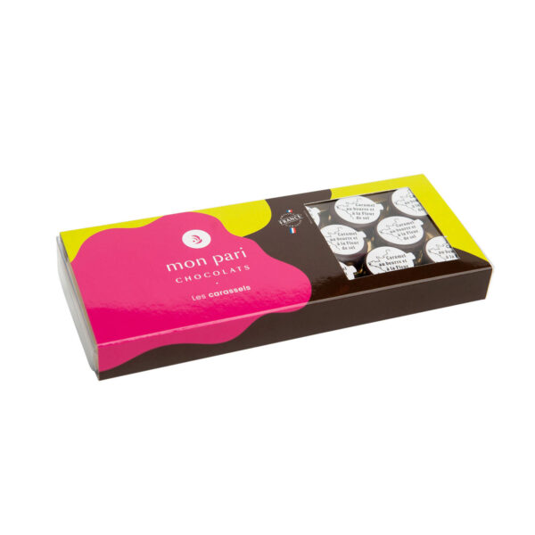 Les Carassels, sont devenus au fil du temps, des classiques de la maison Mon pari Gourmand : sous une coque de chocolat craquante, retrouvez la texture crémeuse et onctueuse du caramel, complété de quelques cristaux de fleur de sel craquants sous la dent, pour savourer toute l’excellence d’un éternel classique revisité ! Le coffret Carassels saura enchanter petits et grands !