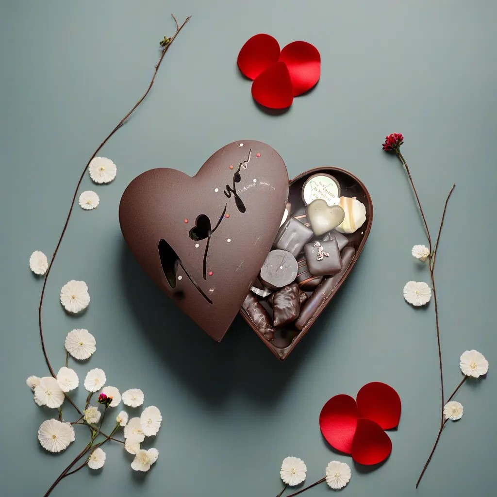 Tout se mange ! L’écrin cœur tendre ainsi que l’assortiment de bonbons de chocolat se trouvant à l’intérieur… laissez vous surprendre !