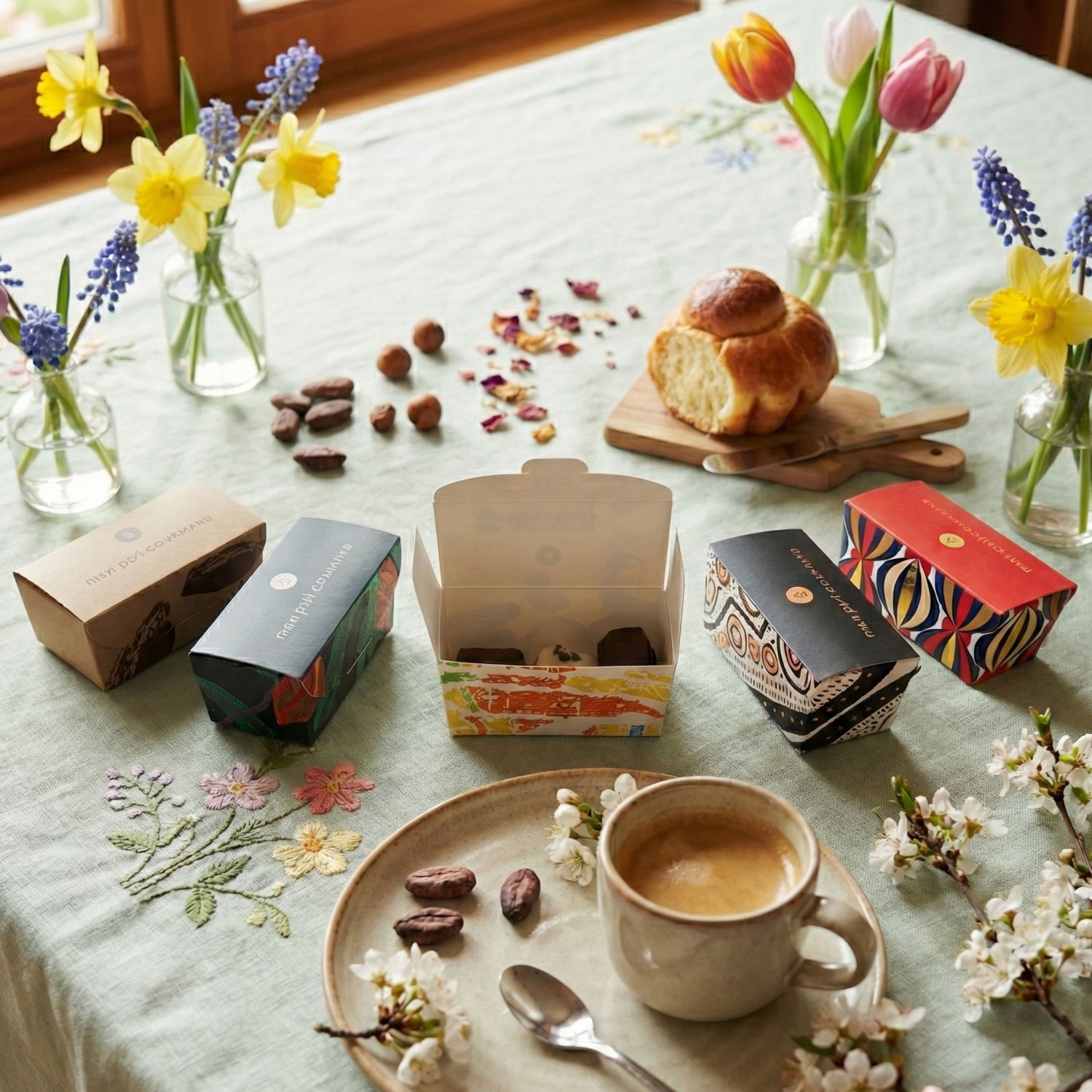 Tous les chocolats peuvent contenir des traces d’autres fruits à coque, de sésame, d’oeuf, lait, gluten et soja.
